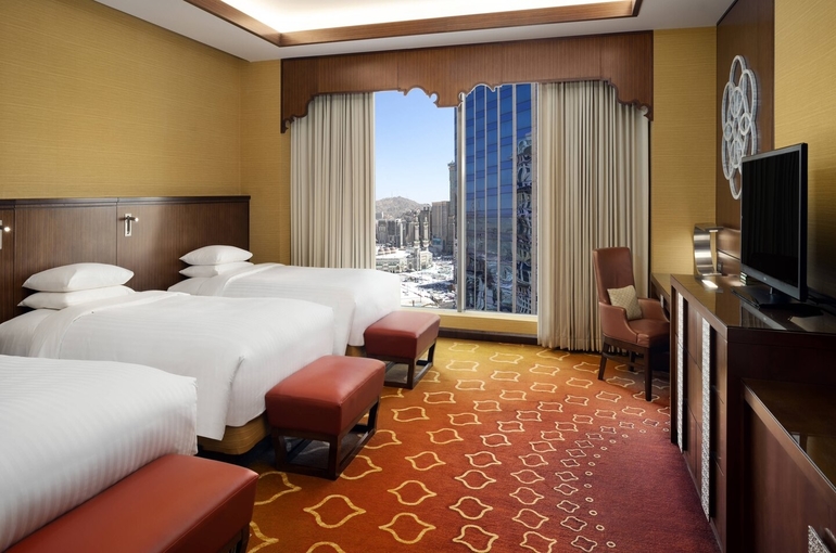 5 Days Accommodations in: - Marriott Makkah hotel (5 stars) - Hyatt Regency (5 stars) - Makkah hotel "previously Hilton hotel" (5 stars) In front of the Haram with easy access to main gate 4 Person per room Breakfast and dinner (open buffets) are provided |